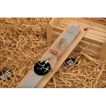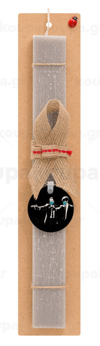 Pulp Fiction guns, Πασχαλινή Λαμπάδα με ξύλινο μπρελόκ & κερί αρωματικό πλακέ (30cm) (ΓΚΡΙ)