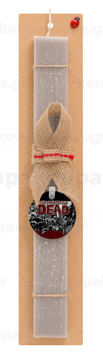 The walking dead comic drawing zombie, Πασχαλινή Λαμπάδα με ξύλινο μπρελόκ & κερί αρωματικό πλακέ (30cm) (ΓΚΡΙ)