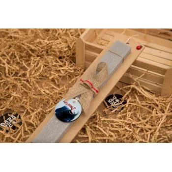 Why so serious?, Πασχαλινή Λαμπάδα με ξύλινο μπρελόκ & κερί αρωματικό πλακέ (30cm) (ΓΚΡΙ)
