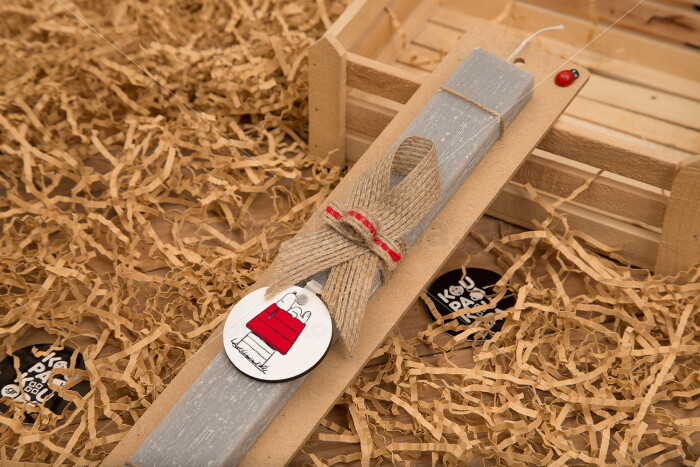 Το σπίτι του snoopy, Πασχαλινή Λαμπάδα με ξύλινο μπρελόκ & κερί αρωματικό πλακέ (30cm) (ΓΚΡΙ)