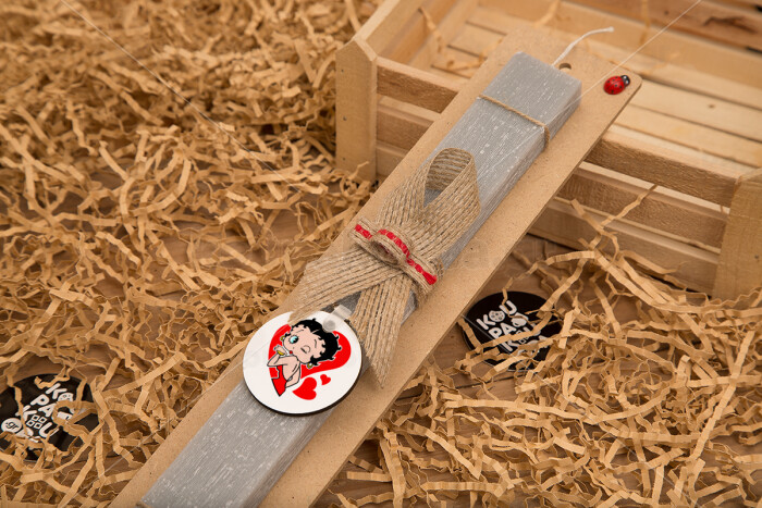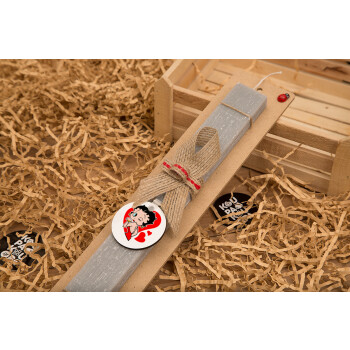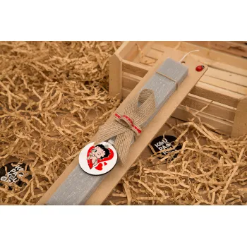 Betty Boop, Πασχαλινή Λαμπάδα με ξύλινο μπρελόκ & κερί αρωματικό πλακέ (30cm) (ΓΚΡΙ)