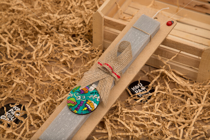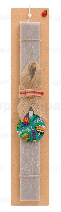 Comic oh, Πασχαλινή Λαμπάδα με ξύλινο μπρελόκ & κερί αρωματικό πλακέ (30cm) (ΓΚΡΙ)