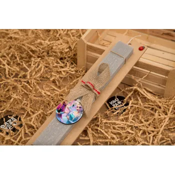 Έλσα & Άννα, Πασχαλινή Λαμπάδα με ξύλινο μπρελόκ & κερί αρωματικό πλακέ (30cm) (ΓΚΡΙ)