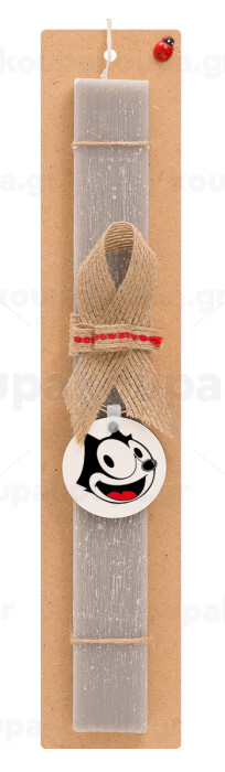 Felix the cat, Πασχαλινή Λαμπάδα με ξύλινο μπρελόκ & κερί αρωματικό πλακέ (30cm) (ΓΚΡΙ)