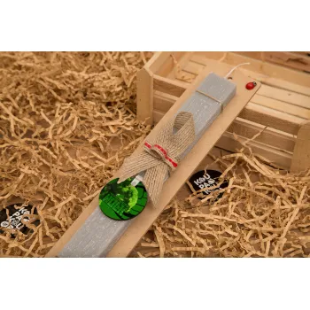 Hulk, Πασχαλινή Λαμπάδα με ξύλινο μπρελόκ & κερί αρωματικό πλακέ (30cm) (ΓΚΡΙ)