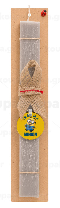 I'm one in a minion, Πασχαλινή Λαμπάδα με ξύλινο μπρελόκ & κερί αρωματικό πλακέ (30cm) (ΓΚΡΙ)