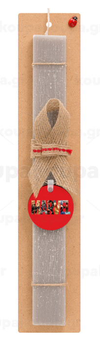 MARVEL Red, Πασχαλινή Λαμπάδα με ξύλινο μπρελόκ & κερί αρωματικό πλακέ (30cm) (ΓΚΡΙ)