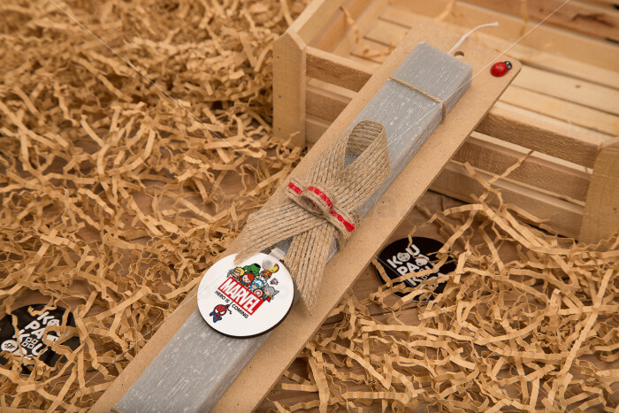 MARVEL, Πασχαλινή Λαμπάδα με ξύλινο μπρελόκ & κερί αρωματικό πλακέ (30cm) (ΓΚΡΙ)