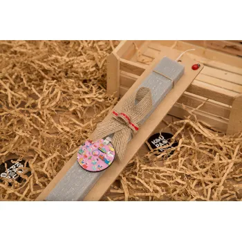 Peppa pig Characters, Πασχαλινή Λαμπάδα με ξύλινο μπρελόκ & κερί αρωματικό πλακέ (30cm) (ΓΚΡΙ)