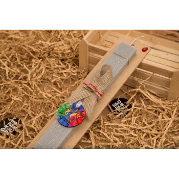 PJ masks, Πασχαλινή Λαμπάδα με ξύλινο μπρελόκ & κερί αρωματικό πλακέ (30cm) (ΓΚΡΙ)