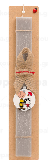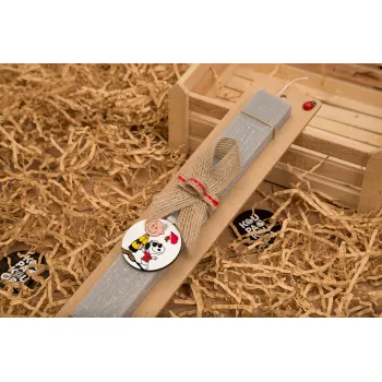 Snoopy & Joe, Πασχαλινή Λαμπάδα με ξύλινο μπρελόκ & κερί αρωματικό πλακέ (30cm) (ΓΚΡΙ)