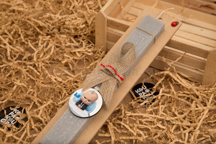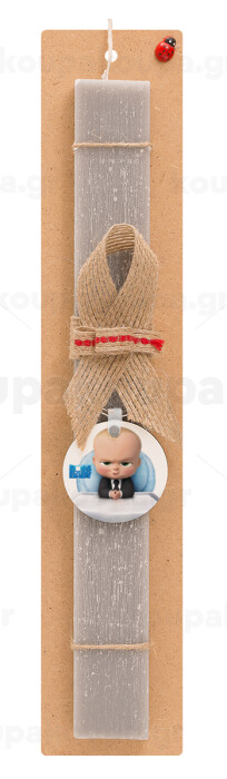 The boss baby, Πασχαλινή Λαμπάδα με ξύλινο μπρελόκ & κερί αρωματικό πλακέ (30cm) (ΓΚΡΙ)