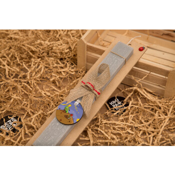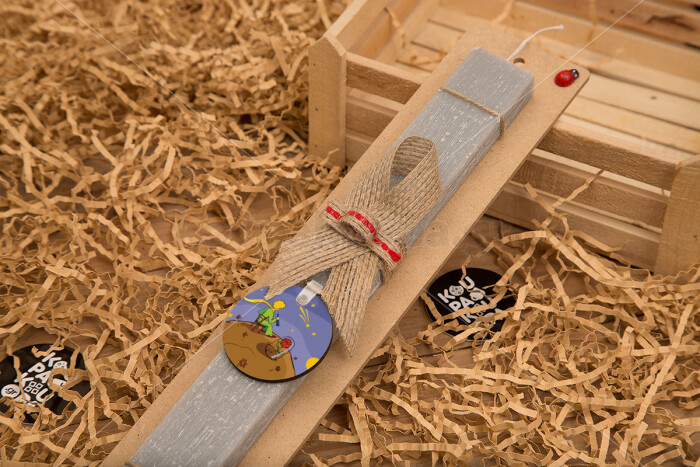 Ο μικρός πρίγκιπας planet, Πασχαλινή Λαμπάδα με ξύλινο μπρελόκ & κερί αρωματικό πλακέ (30cm) (ΓΚΡΙ)