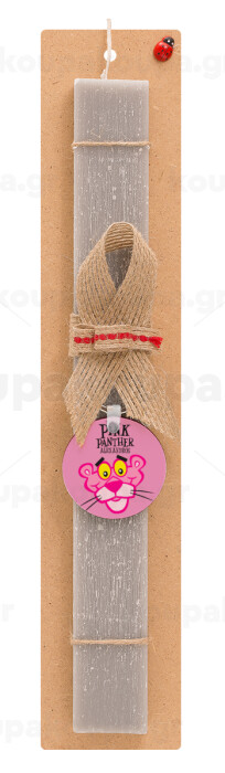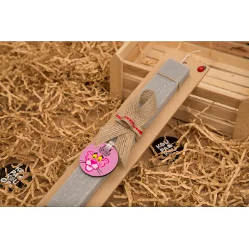 The pink panther, Πασχαλινή Λαμπάδα με ξύλινο μπρελόκ & κερί αρωματικό πλακέ (30cm) (ΓΚΡΙ)