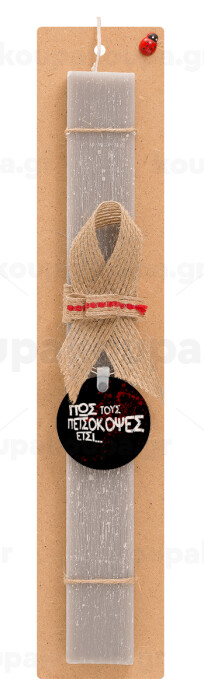 Πως τους πετσόκοψες έτσι..., Πασχαλινή Λαμπάδα με ξύλινο μπρελόκ & κερί αρωματικό πλακέ (30cm) (ΓΚΡΙ)