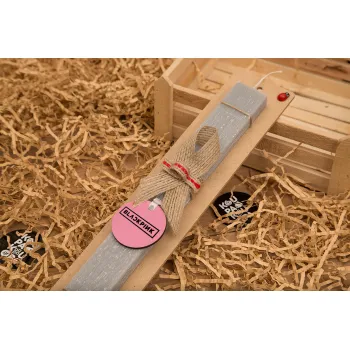 BLACKPINK, Πασχαλινή Λαμπάδα με ξύλινο μπρελόκ & κερί αρωματικό πλακέ (30cm) (ΓΚΡΙ)
