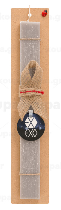 EXO Band korea, Πασχαλινή Λαμπάδα με ξύλινο μπρελόκ & κερί αρωματικό πλακέ (30cm) (ΓΚΡΙ)