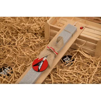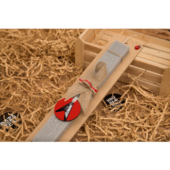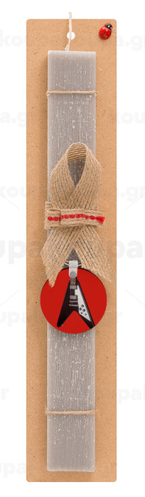 Guitar flying V, Πασχαλινή Λαμπάδα με ξύλινο μπρελόκ & κερί αρωματικό πλακέ (30cm) (ΓΚΡΙ)