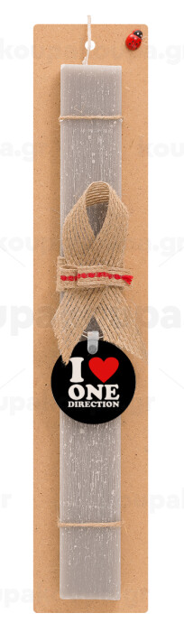 I Love, One Direction, Πασχαλινή Λαμπάδα με ξύλινο μπρελόκ & κερί αρωματικό πλακέ (30cm) (ΓΚΡΙ)