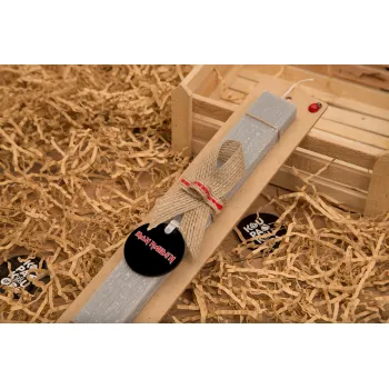 Iron maiden, Πασχαλινή Λαμπάδα με ξύλινο μπρελόκ & κερί αρωματικό πλακέ (30cm) (ΓΚΡΙ)