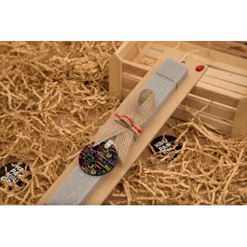 Rock Bands, Πασχαλινή Λαμπάδα με ξύλινο μπρελόκ & κερί αρωματικό πλακέ (30cm) (ΓΚΡΙ)