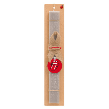 Rolling Stones Kiss, Πασχαλινή Λαμπάδα με ξύλινο μπρελόκ & κερί αρωματικό πλακέ (30cm) (ΓΚΡΙ)