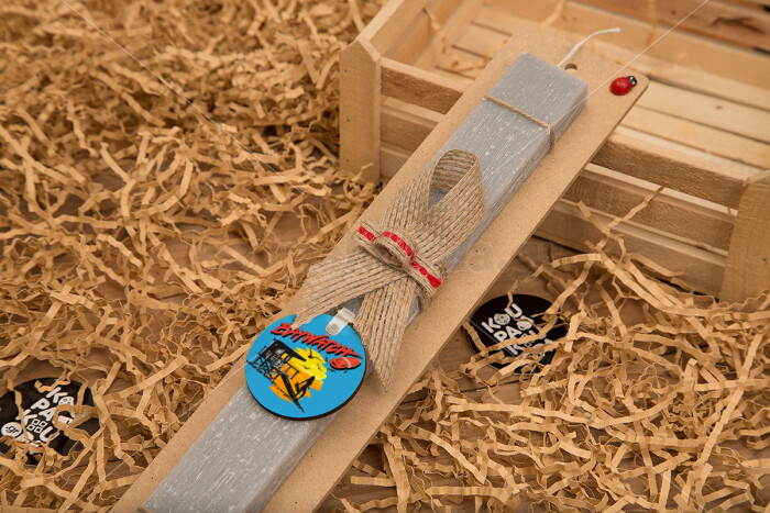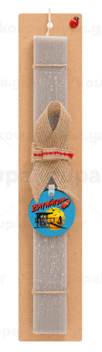 Baywatch, Πασχαλινή Λαμπάδα με ξύλινο μπρελόκ & κερί αρωματικό πλακέ (30cm) (ΓΚΡΙ)