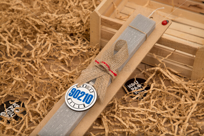 Beverly Hills, 90210, Πασχαλινή Λαμπάδα με ξύλινο μπρελόκ & κερί αρωματικό πλακέ (30cm) (ΓΚΡΙ)
