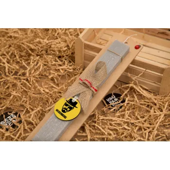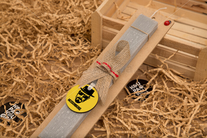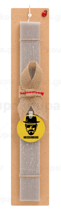 Heisenberg breaking bad, Πασχαλινή Λαμπάδα με ξύλινο μπρελόκ & κερί αρωματικό πλακέ (30cm) (ΓΚΡΙ)
