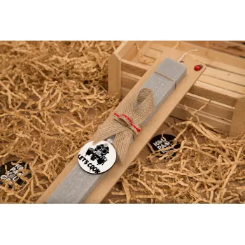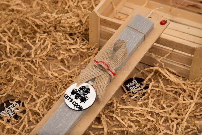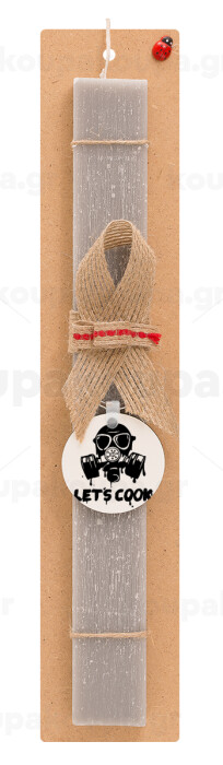 Let's cook mask, Πασχαλινή Λαμπάδα με ξύλινο μπρελόκ & κερί αρωματικό πλακέ (30cm) (ΓΚΡΙ)