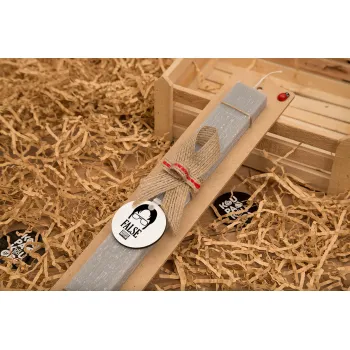 The office Dwight false, Πασχαλινή Λαμπάδα με ξύλινο μπρελόκ & κερί αρωματικό πλακέ (30cm) (ΓΚΡΙ)