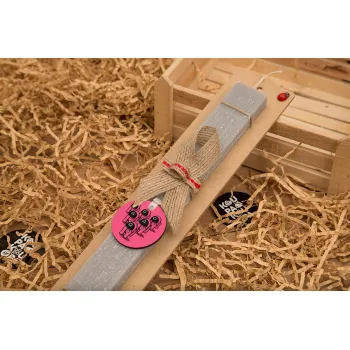 The squid game among us, Πασχαλινή Λαμπάδα με ξύλινο μπρελόκ & κερί αρωματικό πλακέ (30cm) (ΓΚΡΙ)