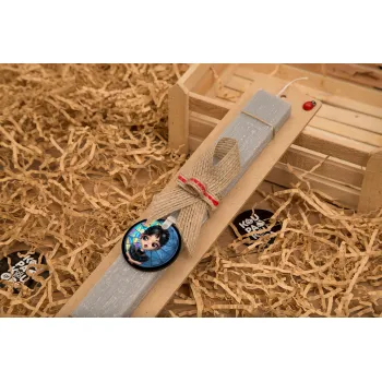 Wednesday big eyes, Πασχαλινή Λαμπάδα με ξύλινο μπρελόκ & κερί αρωματικό πλακέ (30cm) (ΓΚΡΙ)