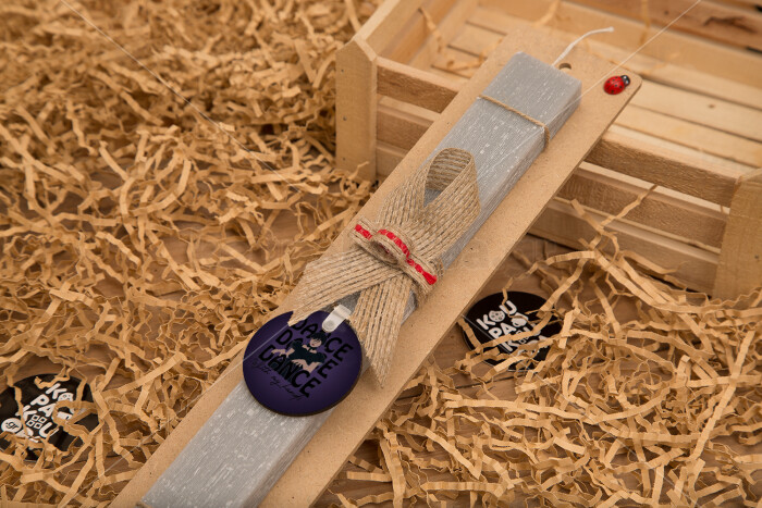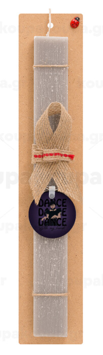 Wednesday dance dance dance, Πασχαλινή Λαμπάδα με ξύλινο μπρελόκ & κερί αρωματικό πλακέ (30cm) (ΓΚΡΙ)