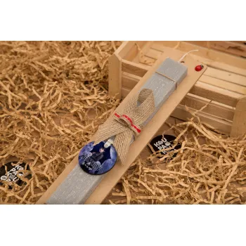 Wednesday rain, Πασχαλινή Λαμπάδα με ξύλινο μπρελόκ & κερί αρωματικό πλακέ (30cm) (ΓΚΡΙ)