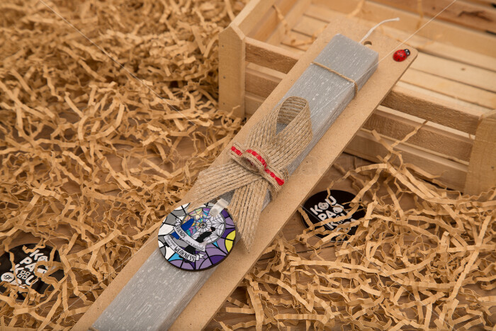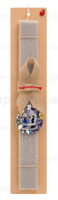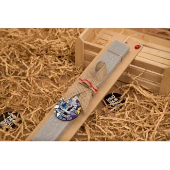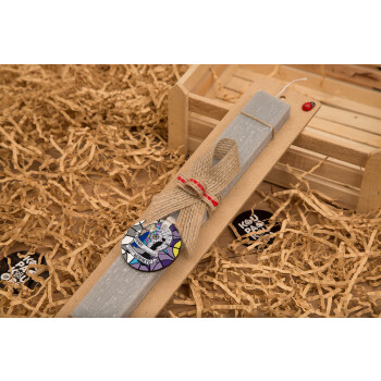 Wednesday window, Πασχαλινή Λαμπάδα με ξύλινο μπρελόκ & κερί αρωματικό πλακέ (30cm) (ΓΚΡΙ)