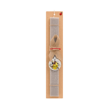 Πασχαλινή Λαμπάδα με ξύλινο μπρελόκ & κερί αρωματικό πλακέ (30cm) (ΓΚΡΙ) με θέμα Αθλητικά