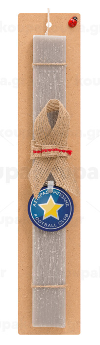 Αστέρας Τρίπολης, Πασχαλινή Λαμπάδα με ξύλινο μπρελόκ & κερί αρωματικό πλακέ (30cm) (ΓΚΡΙ)