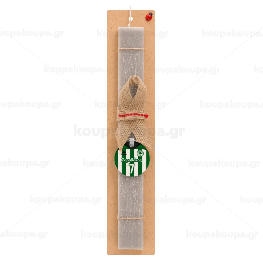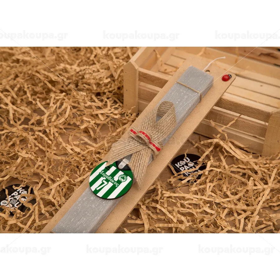Παναθηναϊκός εμφάνιση, Πασχαλινή Λαμπάδα με ξύλινο μπρελόκ & κερί αρωματικό πλακέ (30cm) (ΓΚΡΙ)