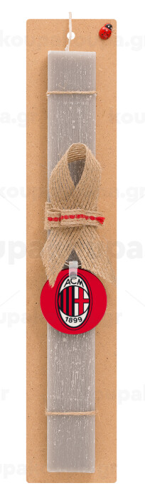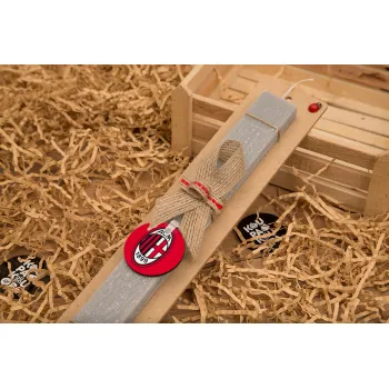 ACM, Πασχαλινή Λαμπάδα με ξύλινο μπρελόκ & κερί αρωματικό πλακέ (30cm) (ΓΚΡΙ)