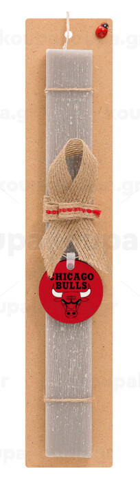 Chicago Bulls, Πασχαλινή Λαμπάδα με ξύλινο μπρελόκ & κερί αρωματικό πλακέ (30cm) (ΓΚΡΙ)