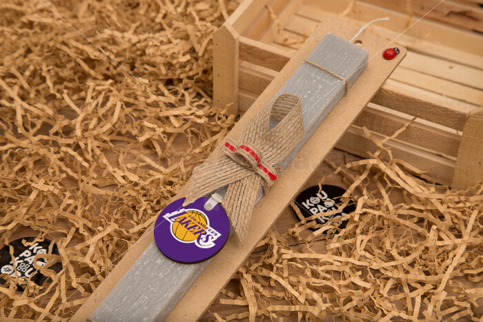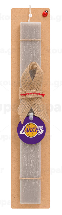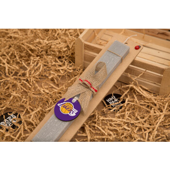 Lakers, Πασχαλινή Λαμπάδα με ξύλινο μπρελόκ & κερί αρωματικό πλακέ (30cm) (ΓΚΡΙ)