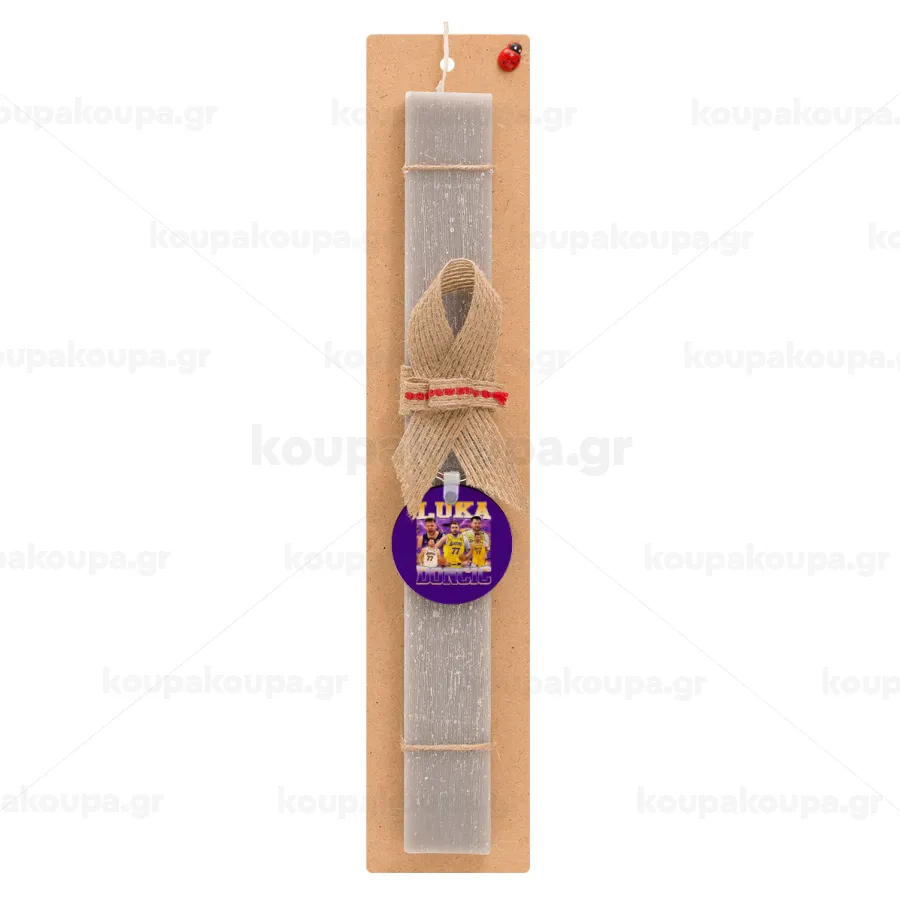 Luka Doncic Basketball , Πασχαλινή Λαμπάδα με ξύλινο μπρελόκ & κερί αρωματικό πλακέ (30cm) (ΓΚΡΙ)