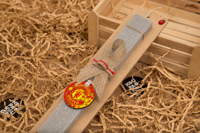 Manchester United F.C., Πασχαλινή Λαμπάδα με ξύλινο μπρελόκ & κερί αρωματικό πλακέ (30cm) (ΓΚΡΙ)