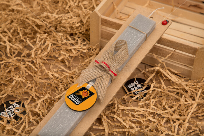 Phoenix Suns, Πασχαλινή Λαμπάδα με ξύλινο μπρελόκ & κερί αρωματικό πλακέ (30cm) (ΓΚΡΙ)