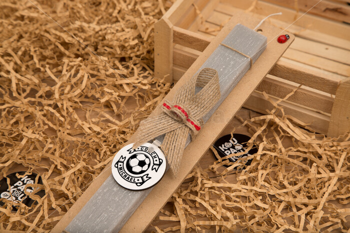 Soccer coach, Πασχαλινή Λαμπάδα με ξύλινο μπρελόκ & κερί αρωματικό πλακέ (30cm) (ΓΚΡΙ)
