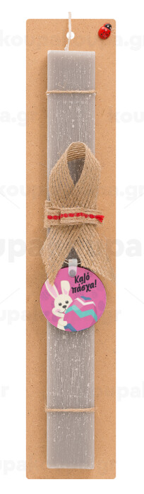 Καλό πάσχα, Πασχαλινή Λαμπάδα με ξύλινο μπρελόκ & κερί αρωματικό πλακέ (30cm) (ΓΚΡΙ)