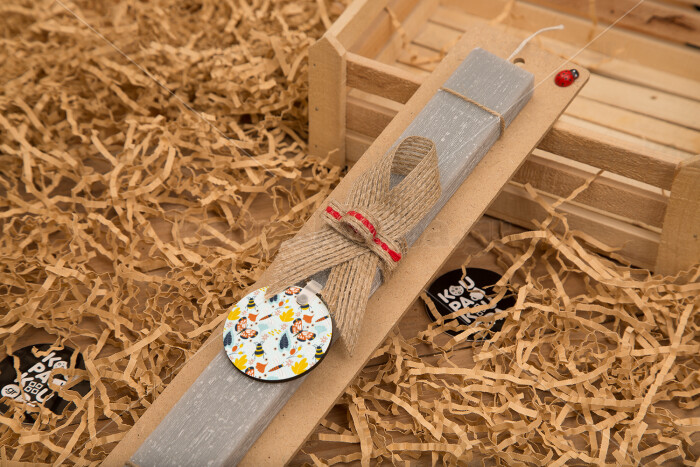 Πεταλούδες, Πασχαλινή Λαμπάδα με ξύλινο μπρελόκ & κερί αρωματικό πλακέ (30cm) (ΓΚΡΙ)