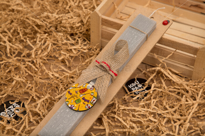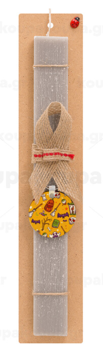 Happy Halloween, Πασχαλινή Λαμπάδα με ξύλινο μπρελόκ & κερί αρωματικό πλακέ (30cm) (ΓΚΡΙ)