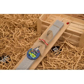 Stitch Halloween scooby car, Πασχαλινή Λαμπάδα με ξύλινο μπρελόκ & κερί αρωματικό πλακέ (30cm) (ΓΚΡΙ)